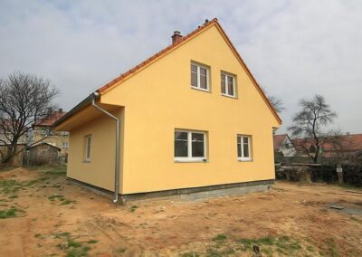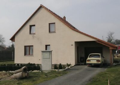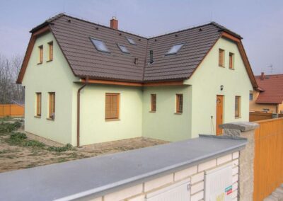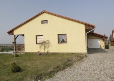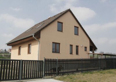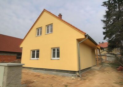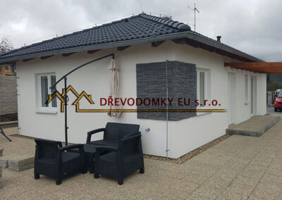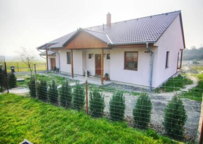 „Mám krásný vysněný dům.Jednou večer jsem seděla na balkoně a řekla jsem si,že më nebaví žít v paneláku a ještě ten večer jsem celé rodině oznámila,že chci stavět!Rodina kroutila hlavou co si zase vymýšlím. Je mi 42 let a chci žít v baráčku s moji rodinou, tak jsem celou noc nespala a přemýšlela kde vzít na barák. Až k ránu jsem přišla na to, že prodám byt a za něj si postavíme barák. Začala jsem se dívat na stavby a rozhodovala jsem se, jaký zvolit materiál. Nakonec vyhrála dřevostavba. Přečetla jsem si o dřevostavbě vše, co mě zajímalo a rozhodla jsem se pro ni. Chtěla jsem 4+1 do 2.800.000,- Kč,ale bylo par firem, co mi vypočítali o skoro 1 milion víc, tak jsem ztrácela naději. Jednou jsem večer zasedla k internetu a vyjela mi tam stránka Poptavej.cz, tak jsem je oslovila a přišla mi nabídka od Dřevodomky a byla jsem překvapená s mojí náročností na kolik by mě vyšel baráček mých snů. Slovo dalo slovo a začala jsem jednat s p. Slachem a p. Ševčíkovou. Byla to super práce! Nenechali mě, abych byla ve stresu co se týče úřadů, prodeje bytu, a projektů. Vše za mě vyřídili a já jsem v klidu dělala svoji práci s vědomím, že vše jde jak má být. Když už se začalo stavět, tak si nás převzala stavbyvedoucí p. Melčová, Nevím, kde se to v ní vzalo, ale všichni řemeslníci z ní měli respekt. Super ženská. Jsem nedůvěřivá a tak jsem měla i svého stavbyvedoucího a ten mi řekl až u konce stavby, že jsem si vybrala dobrou firmu, že nemůže říct proti Dřevodomkum nic. Děkuji celému týmu za uskutečnění mého snu jste super, teď už jenom můžu říct, že jsem šťastná a všem mohu jenom doporučit.“
